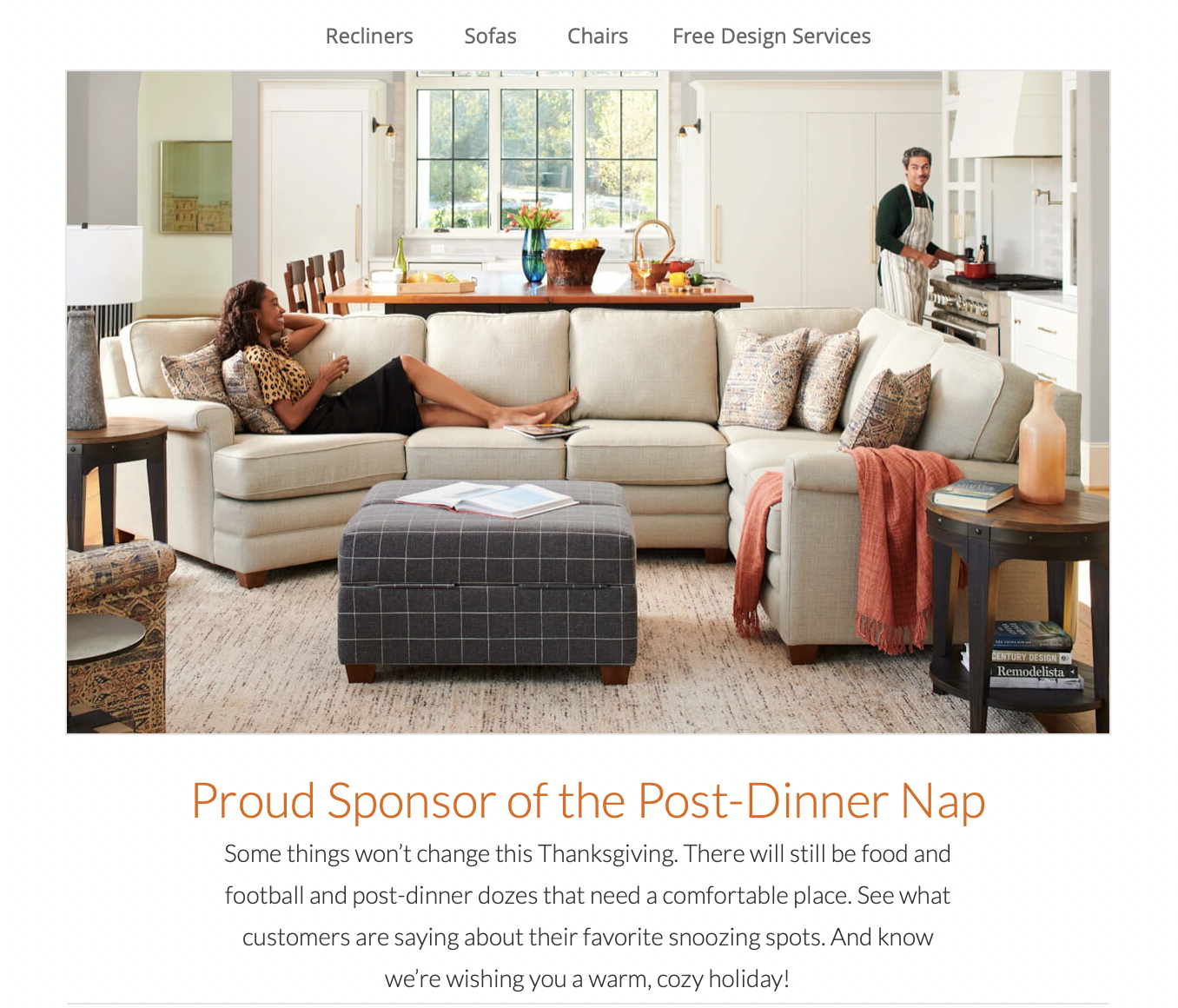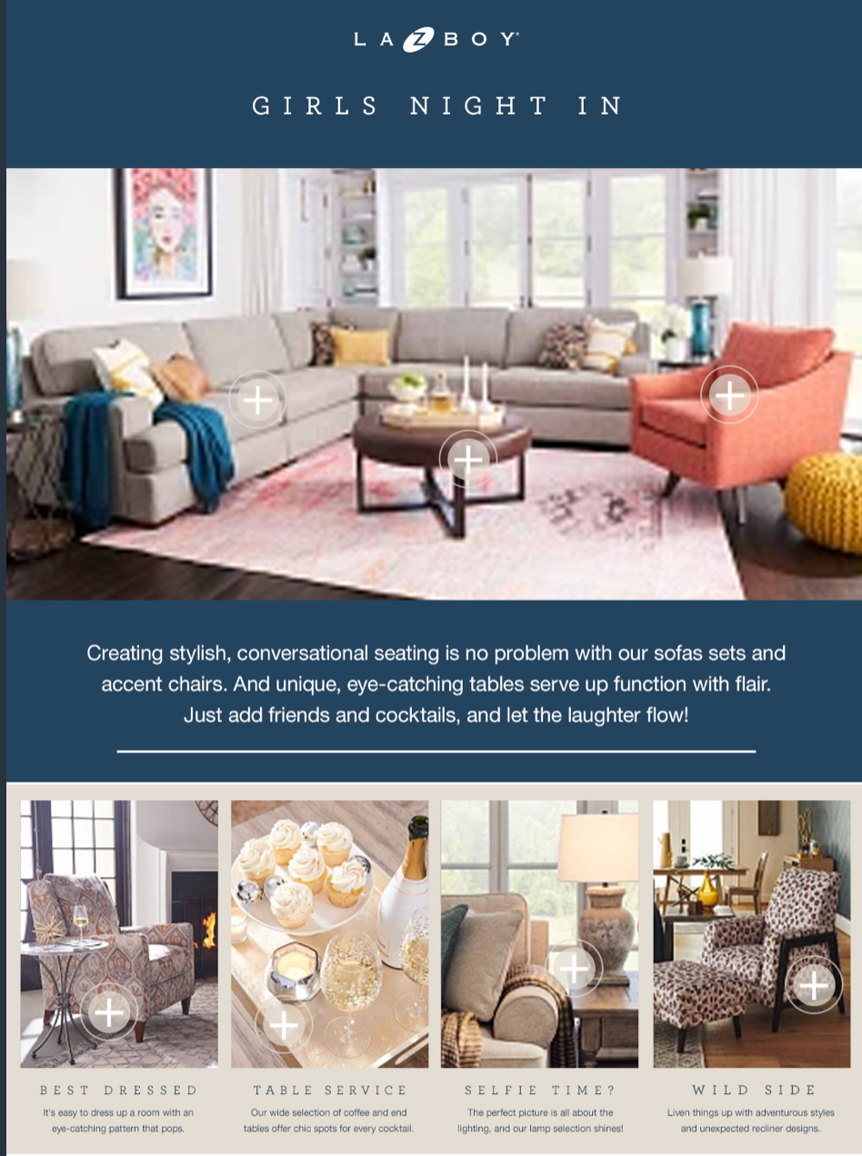 A light, friendly, conversational tone that appeals to a broad demographic across several generations yet stays true to the legacy of our company as one of quality, comfort and style. Phew! That was a tall order when I took on the role of Lead Copywriter for La-Z-Boy Corporation.